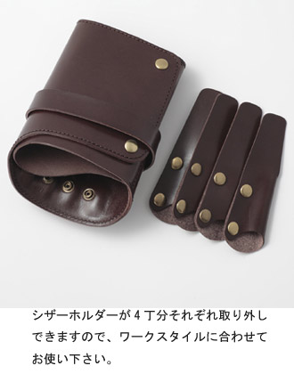 特徴としては、シザーホルダーが4丁すべて取り外しできるので、アシスタントの方はホルダーをすべてなくしてアシスタントケースとして使用することも出来ます。また、シンプルな形状で2層に分かれた収納スペースがあります。