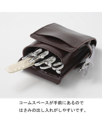 コームを入れるスペースが手前にあるのでシザーの出し入れの際コームが邪魔になることがありません。また、スロットホルダーが取り外しできるのでお掃除も簡単です。
