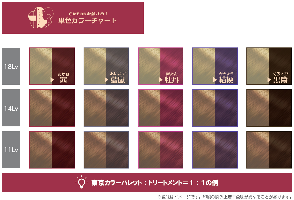 他の色と掛け合わせて使うことでさらに幅広く色が出せます 栗もしくは薄墨:3 いろあそび:1 白髪浸透ブースター:4 パンフレットに記載があります https://www.b-zone.biz/html/user_data/pdf/tcp_shiragabokashi.pdf 栗、薄墨とそれ以外の色ではHC染料と塩基性染料のバランスが違いますので 単品での使用はおすすめできません