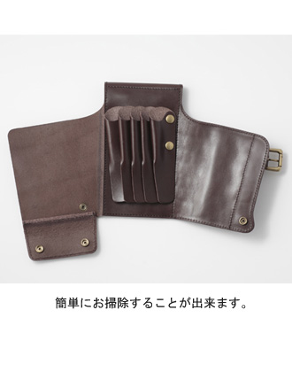 シザーホルダーが1丁取り外しできるので4丁入れもしくは5丁入れとしてご使用出来ます。また、ボタンを外すだけでオープンにできるのでお掃除も簡単です。